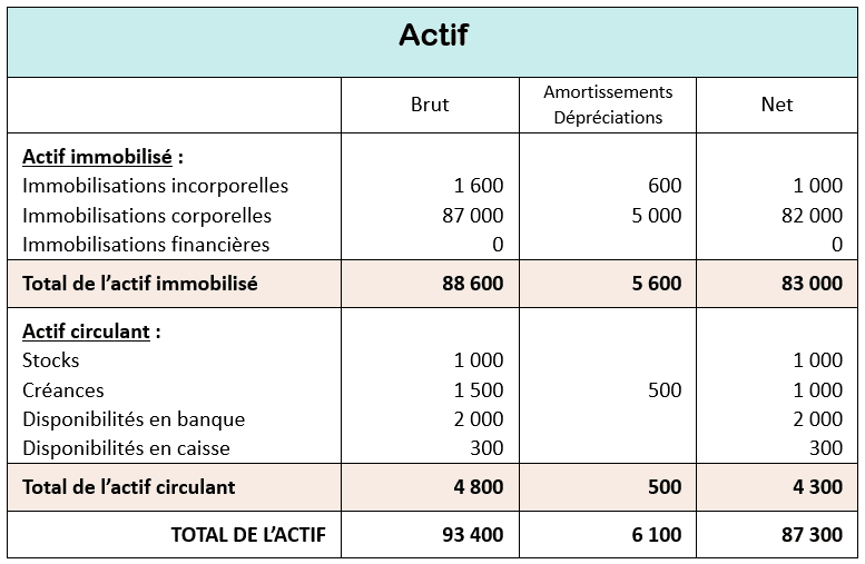 Voici, par exemple, le détail de l’actif d’une entreprise :