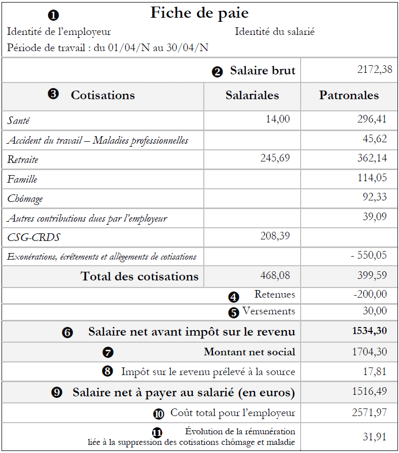 Comprendre sa fiche de paie, les 11 éléments :